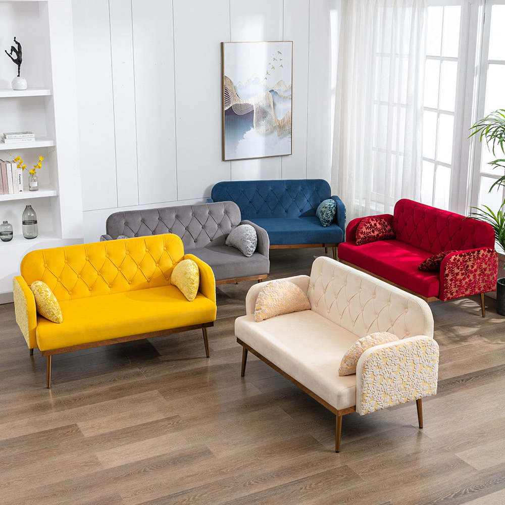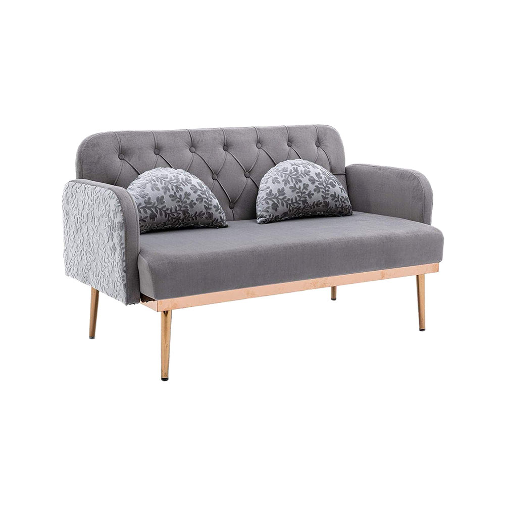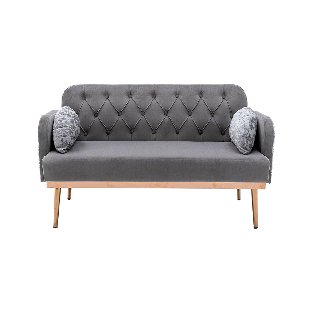 Velvet Sofa, Button Tufted Couch With 2 Pillows